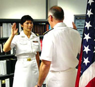 圖文:華人翁正欣將出任美太平洋司令部發(fā)言人 2001年6月4日 08:23 ![]() 中新網(wǎng)香港6月4日消息:幼年時自臺灣移民美國的現(xiàn)役美國海軍少校翁正欣,7月起將出任太平洋美軍司令部的新聞官。 據(jù)“中央社”報道,翁正欣生于云林水林鄉(xiāng),7歲隨父母移民美國。她說,她很高興到夏威夷任職,因為她的親戚都住在臺灣,而夏威夷離臺灣比較近。她十年前從美國海軍官校畢業(yè),今天晉升少校,同時領(lǐng)取華府天主教大學(xué)的政治學(xué)碩士學(xué)位。 翁正欣目前在五角大廈任職,職務(wù)是海軍新聞官。 她的父親翁義雄說,正欣選擇從軍,是因為他和太太以前在假日常到海軍官校所在地馬里蘭州安納波利斯,太太羨慕官校女生穿著白色制服非常帥氣的樣子,正欣便決定效法,進入海官就讀。翁義雄目前在馬里蘭州政府衛(wèi)生局任職。 翁正欣說,當(dāng)時從臺灣移民美國很不容易,她自認能在美國成長非常幸運,而選擇從軍部份是想要報效這個國家。她的丈夫約翰·桑默是她在官校的學(xué)長。 |