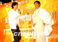 組圖:劉德華在港時(shí)代廣場(chǎng)為其蠟像揭幕 2001年06月30日 21:12 ![]() 香港著名男歌星劉德華30日在時(shí)代廣場(chǎng)為其蠟像揭幕。劉德華是首位獲倫敦杜莎夫人蠟像館制作的香港歌手。首次與自己的蠟像見面的劉德華欣喜的為蠟像整裝。中新社傳真洪少葵攝 ![]() 亞洲樂(lè)壇巨星劉德華30日在時(shí)代廣場(chǎng)為其蠟像揭幕時(shí),擁吻蠟像館外籍女工作人員,令其開心不已。中新社傳真洪少葵攝