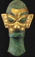 圖文:中國四川三星堆出土文物巡展至紐約 2002年03月05日 11:50 ![]() 鑲有金箔的青銅頭像是四川三星堆出土、公元前十三世紀(jì)的珍貴文物。三月四日,它和其他一百二十七件文物一起,首次亮相紐約大都會博物館,這些珍貴的人類文化遺產(chǎn)將向世人“講述”中國古蜀文化的源流與演變。