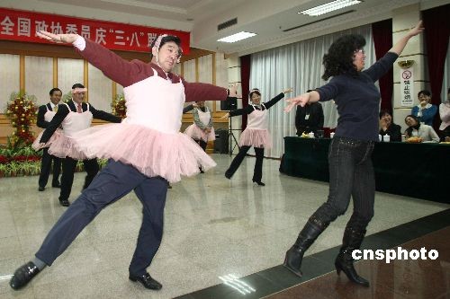 圖:迎"三·八"聯(lián)歡 委員裝扮成小天鵝