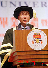 澳門大學(xué)二十七日舉行學(xué)年畢業(yè)典禮并向獲得博士、碩士等學(xué)位的學(xué)生頒發(fā)證書,特區(qū)行政長官、澳大校監(jiān)何厚鏵在典禮上發(fā)表講話。中新社記者 宗金柱 攝