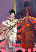 圖文:慶澳門回歸一周年文藝晚會(huì)2 2000年12月12日 09:34 ![]() 演唱蘇軾詞《水調(diào)歌頭、明月幾時(shí)有》.為慶祝澳門回歸一周年,中央電視臺(tái)心連心藝術(shù)團(tuán)十一日晚在澳門蓮花廣場(chǎng)舉辦“流光溢彩濠江情”文藝晚會(huì),圖為演唱蘇軾詞《水調(diào)歌頭、明月幾時(shí)有》。中新社傳真 宗金柱 攝