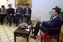 圖文:何厚鏵接受內(nèi)地傳媒集體采訪2 2000年12月14日 14:34 ![]() 在澳門(mén)回歸祖國(guó)一周年之際,行政長(zhǎng)官何厚鏵十三日在禮賓府接受內(nèi)地傳媒集體采訪。中新社傳真 宗金柱攝