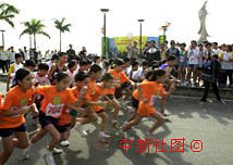 圖片:澳門中華總商會青年委員會舉行一系列慶;顒 2000年12月18日 15:42 ![]() 澳門回歸一周年到來之際,澳門中華總商會青年委員會十七日舉行一系列慶;顒,圖為在觀音像前舉辦的環(huán)湖長跑比賽。中新社傳真 宗金柱攝