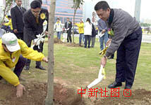 圖片:何厚鏵為回歸一周年植樹 2000年12月18日 15:59 ![]() 何厚鏵為回歸一周年植樹(橫片)。為慶祝澳門回歸一周年,特區(qū)行政長官何厚鏵十七日在蓮花廣場附近種下一棵紀念樹。中新社傳真 宗金柱攝