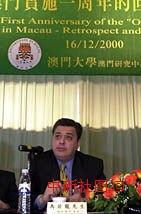 圖文:“根在澳門”馬若龍在會上發(fā)言 2000年12月18日 16:30 ![]() 慶祝回歸一周年,澳門大學十六日舉行“一國兩制在澳門實踐一周年的回顧與前瞻”研討會,圖為土生葡人社團“根在澳門”主席馬若龍在會上發(fā)言。中新社傳真 宗金柱攝
