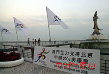 圖文:澳門新口岸布滿支持北京申辦2008年奧運(yùn)會(huì)的旗幟 2000年12月19日 11:53 ![]() 澳門新口岸海濱布滿支持北京申辦2008年奧運(yùn)會(huì)的旗幟。澳門新口岸海濱布滿支持北京申辦2008年奧運(yùn)會(huì)的旗幟迎風(fēng)飄揚(yáng),為在此間迎接澳門回歸一周年慶典活動(dòng)增添熱鬧氣氛。中新社傳真洪少葵攝