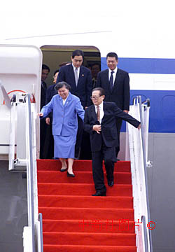 圖文:國家主席江澤民抵達(dá)澳門 2000年12月19日 17:37 ![]() 中國國家主席江澤民19日抵達(dá)澳門特區(qū)出席慶祝澳門回歸一周年慶典活動(dòng),中國邊防海警炮艇清晨在澳門海域戒備,作好安全保護(hù)工作。中新社傳真洪少葵攝 中新社澳門十二月十九日電(記者 陳立宇 趙健)中共中央總書記、國家主席、中央軍委主席江澤民乘坐的專機(jī)于今天十六點(diǎn)二十八分抵達(dá)澳門國際機(jī)場,江澤民主席和夫人王冶坪在澳門特別行政區(qū)行政長官何厚鏵的陪同下步下舷梯,踏上了澳門這塊剛剛回歸祖國一周年的土地。 T型的鮮紅地毯從舷梯一直鋪到江主席的座車前。歡迎人群列隊(duì)站立在地毯旁,“熱烈歡迎江澤民主席和夫人蒞臨澳門”的大型橫幅十分醒目。 一百五十多位小朋友以及一百一十多位澳門市民冒著細(xì)雨,揮舞著國旗、區(qū)旗和花束,歡迎江澤民主席一行的到來。 伴隨著澳門警察銀樂隊(duì)演奏的歡迎曲,澳門培正中學(xué)小學(xué)部十歲的女學(xué)生容韻琳和濠江中學(xué)小學(xué)部九歲的男學(xué)生岑啟彥,向江澤民主席和夫人王冶坪獻(xiàn)上了鮮花。滿面笑容的江澤民主席再次親吻了去年也曾向他獻(xiàn)花的容韻琳小姑娘,歡迎人群中響起熱烈的掌聲。 江澤民主席同前來迎接的全國政協(xié)副主席馬萬祺、何厚鏵夫人劉渭楨以及澳門特別行政區(qū)主要官員曹其真、岑浩輝、陳麗敏、譚伯源、張國華、崔世安、歐文龍、張?jiān)、蔡美莉、何超明、白英偉、徐禮恒等一一握手。 中央人民政府駐澳門特別行政區(qū)聯(lián)絡(luò)辦公室主任王啟人、外交部駐澳門特別行政區(qū)特派員原燾、中國人民解放軍駐澳部隊(duì)司令員劉粵軍以及先期抵達(dá)的公安部副部長田期玉、國務(wù)院港澳辦副主任陳佐洱、國務(wù)院新聞辦副主任李冰等也到機(jī)場迎接江主席一行。 江澤民主席的主要陪同人員:國務(wù)院副總理錢其琛夫婦、中國人民解放軍總政治部主任于永波上將、中共中央辦公廳主任王剛、國務(wù)院港澳辦主任廖暉等人同機(jī)抵達(dá)。 江澤民此行將在澳門停留至二十一日,參加一系列慶祝澳門回歸祖國一周年的活動(dòng)。 |
