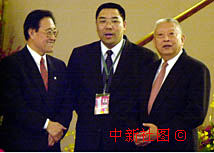 圖片:董建華與宗光耀、長(zhǎng)崔世安一起交談 2000年12月19日 21:33 ![]() 中華人民共和國(guó)澳門(mén)特別行政區(qū)成立一周年慶祝晚宴十九日在澳門(mén)綜藝館舉行,香港特區(qū)行政長(zhǎng)官董建華(右一)在宴會(huì)上與澳門(mén)中聯(lián)辦副主任宗光耀、澳門(mén)特區(qū)社會(huì)文化司司長(zhǎng)崔世安(中)一起交談。中新社傳真 宗金柱 攝