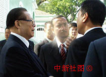 新聞組照:江澤民21日上午參觀澳門(mén)住宅博物館 2000年12月21日 14:10 ![]() 國(guó)家主席江澤民21日上午前往澳門(mén)住宅博物館參觀,聽(tīng)取臨時(shí)海島市政局執(zhí)委會(huì)主席、土生葡人馬家杰介紹。中新社傳真 董會(huì)峰 攝 ![]() 國(guó)家主席江澤民21日上午參觀澳門(mén)住宅博物館。中新社傳真 董會(huì)峰 攝