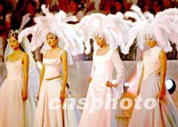 圖:百余名模九運(yùn)閉幕式上進(jìn)行時(shí)裝表演 2001年11月26日 11:48 ![]() 二十五日晚,百余名模特在九運(yùn)會閉幕式大型文藝晚會上表演時(shí)裝《彩云追月》。中新社記者陳文攝 |