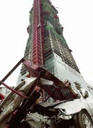 臺(tái)北"地標(biāo)"建筑墜物停工 傾斜民宅將連夜支撐 2002年03月31日 20:08 ![]() 臺(tái)北“金融大樓”吊臂墜落砸毀轎車并造成傷亡。 中新網(wǎng)香港3月31日消息:臺(tái)北訊,臺(tái)北“國際金融大樓”工地在今天的大地震中吊臂墜落,造成至少4人死亡多人受傷的慘劇。臺(tái)北當(dāng)局已經(jīng)要求業(yè)者停工。 預(yù)定興建101層樓的臺(tái)北“國際金融大樓”,曾被預(yù)計(jì)為臺(tái)北未來的一座“地標(biāo)”性的建筑,目前已經(jīng)興建到一半的高度。但在地震發(fā)生時(shí),架設(shè)在頂部的兩具吊臂與支架發(fā)生松脫而墮落,其中一具甚至掉落在馬路上。 依照當(dāng)局規(guī)定,任何工地都必須依照規(guī)定設(shè)置防震性的防護(hù)措施。但“金融大樓”頂樓的吊臂在設(shè)置時(shí)是否合乎安全規(guī)定?吊臂支撐是否穩(wěn)固?將成為當(dāng)局調(diào)查的重點(diǎn)。 臺(tái)北市的“建筑管理處”今天已要求調(diào)查業(yè)者在施工時(shí)是否做好安全措施,并厘清肇事責(zé)任歸屬。 此外,臺(tái)北市承德路一座民房因?yàn)閺?qiáng)震而部分倒塌,臺(tái)北市“副市長”歐晉德在7名受困民眾全部被送往醫(yī)院后表示,將連夜完成支撐建筑體的工作,避免這棟傾斜的樓房進(jìn)一步倒塌。