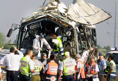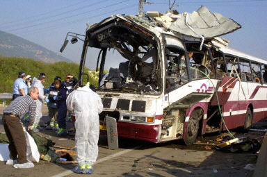 多圖:海法發(fā)生汽車炸彈爆炸事件 哈馬斯宣布負(fù)責(zé) 2002年04月10日 17:01 ![]() 以色列警方在檢查爆炸汽車的殘骸 ![]() 救援人員將遇難者尸體從汽車殘骸內(nèi)抬出 中新網(wǎng)北京4月10日消息:當(dāng)?shù)貢r(shí)間4月10日早(北京時(shí)間10日中午),以色列北部港口城市海法發(fā)生一起自殺爆炸事件,至少造成10人死亡,另有20人受傷。 爆炸發(fā)生在一輛公共汽車上,這輛車是從海法開往耶路撒冷的。以色列方面稱此次爆炸為“恐怖襲擊”,哈馬斯組織已經(jīng)宣布對(duì)此次爆炸事件負(fù)責(zé)。 爆炸發(fā)生前幾小時(shí),以軍曾于黎明時(shí)分向約旦河西岸最大城市納布盧斯的巴勒斯坦難民營(yíng)發(fā)動(dòng)進(jìn)攻,現(xiàn)場(chǎng)可見煙火沖天,以軍炮火、重機(jī)槍頻頻開火,以軍直升機(jī)也發(fā)射了多枚導(dǎo)彈。杰寧也發(fā)生了交火。 爆炸給海法帶來巨大恐慌,3月31日,海法一家餐廳就曾發(fā)生一起自殺性爆炸事件,造成16人喪生。昨晚,以軍士兵在約旦河西岸城市杰寧的難民營(yíng)遭到伏擊,13人喪生,9人受傷。這是近18個(gè)月來以色列方面發(fā)生的最嚴(yán)重單起傷亡事件。以色列總理沙龍隨后稱,以軍在約旦河西岸的軍事行動(dòng)將繼續(xù),直到將巴勒斯坦武裝分子徹底鏟除。(春風(fēng))