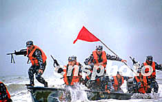 圖:中國海軍陸戰(zhàn)隊進(jìn)行搶灘登陸演練 2002年08月15日 10:56 ![]() 中國海軍陸戰(zhàn)隊八月以未來登陸作戰(zhàn)復(fù)雜氣象條件進(jìn)行實(shí)戰(zhàn)演練,特種分隊在傾盆大雨中搶灘登陸。韓海冰 攝