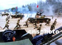 北京軍區(qū)某師合成作戰(zhàn)戰(zhàn)車隆隆譜新篇:金秋時節(jié),塞外高原某合同戰(zhàn)術(shù)訓(xùn)練基地,北京軍區(qū)某機(jī)械化師官兵以喜迎十六大的昂揚熱情,駕馭多種新型裝備,與“藍(lán)軍”斗智斗勇,雙方各出奇招,激戰(zhàn)猶酣。