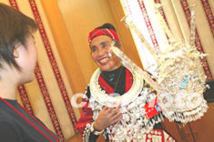 來(lái)自貴州的苗族代表張庭真十二日在中共十六大新聞中心接受記者訪問(wèn),談少數(shù)民族地區(qū)的生活變化。作者:毛建軍
