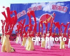 今天的椰城陽(yáng)光燦爛,晴空萬(wàn)里,處處充滿(mǎn)了節(jié)日的喜慶氣象。下午二時(shí),中共?谑形睍(shū)記余行恭宣布“?谌嗣駳g慶黨的十六大勝利閉幕廣場(chǎng)文藝活動(dòng)”開(kāi)始,頓時(shí),諾大的萬(wàn)綠園歡聲雷動(dòng),鼓號(hào)陣陣,掌聲如潮,萬(wàn)綠園成了歡樂(lè)的海洋。?谑行阌^(qū)、龍華區(qū)、美蘭區(qū)和瓊山區(qū)精心組織的五臺(tái)廣場(chǎng)文藝節(jié)目,同時(shí)在綠草如茵的萬(wàn)綠園獻(xiàn)演,歌聲此起彼伏,互相呼應(yīng),氣勢(shì)如虹。海口市三百名學(xué)生進(jìn)行的少年鼓樂(lè)隊(duì)方陣表演、一千名市民表演的太極拳、太極劍、扇舞、健身操等,使數(shù)萬(wàn)市民大飽眼福。美蘭區(qū)的舞龍隊(duì)、龍華區(qū)的舞獅隊(duì)、秀英區(qū)的秧歌隊(duì)也為觀(guān)眾表演了精彩的節(jié)目,博取了眾多市民的陣陣掌聲和喝采。