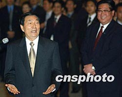 中新網(wǎng)香港11月19日電 在香港出席第十六屆世界會計師大會的國務(wù)院總理朱镕基,今天下午在會展中心會見了中央駐港機構(gòu)和部分中資企業(yè)的主要負(fù)責(zé)人。朱镕基感謝他們?yōu)樨瀼亍耙粐鴥芍啤狈结樅途S護香港的繁榮穩(wěn)定所做的工作,同時要求他們認(rèn)真學(xué)習(xí),嚴(yán)格自律,為香港的繁榮穩(wěn)定添磚加瓦。