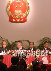 一時(shí)一刻,在一位女工作人員宣讀完當(dāng)選者名單后,董建華發(fā)表了簡短講話。他說,這是香港回歸后第二次作為獨(dú)立單位選舉全國人大代表。新選出的三十六位代表,將代表香港永久性居民中的中國公民,參加最高國家權(quán)力機(jī)關(guān)的工作。他代表選舉會(huì)議主席團(tuán)表示祝賀,并向一個(gè)月來辛勤工作的選舉會(huì)議成員、記者朋友、香港社會(huì)各界表示感謝。