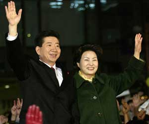 盧武鉉當選韓總統(tǒng)后攜夫人接受支持者祝賀