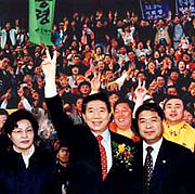 2002年12月19日當(dāng)選為韓國(guó)第16屆總統(tǒng)