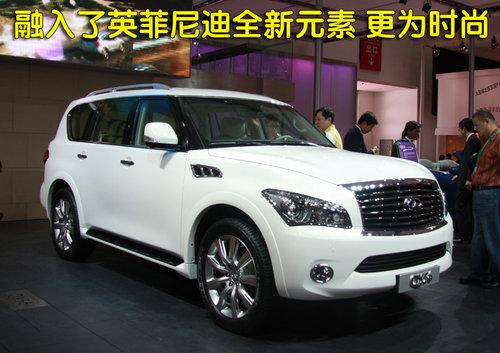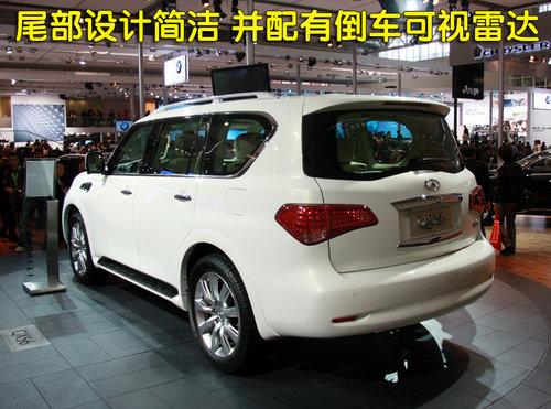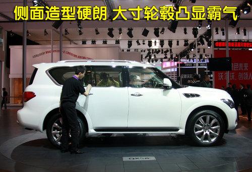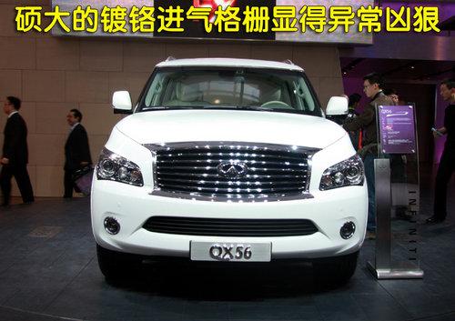 近年來SUV車型持續(xù)火爆,各廠商陸續(xù)推出新的車型以增加市場(chǎng)競(jìng)爭(zhēng)力。同時(shí)性能強(qiáng)悍,寬大舒適的大型SUV,也得到了一些具有獨(dú)特品位喜歡運(yùn)動(dòng)且資金富裕消費(fèi)者的最愛,因此大型豪華SUV市場(chǎng)也受到了不少消費(fèi)者的關(guān)注。英菲尼迪是日系高端品牌中最具有藝術(shù)氣息的,今年在北京車展上就展出了全新一代的QX56,QX56作為一款7座豪華SUV車型,一經(jīng)推出就立刻受到了的中國(guó)消費(fèi)者的關(guān)注。近日我們從英菲尼迪4S店銷售人員處獲悉到,全新的英菲尼迪QX56將于今年9月份到店,預(yù)計(jì)售價(jià)160萬元左右。銷售人員還表示,目前各4S店均已開始接受預(yù)定,訂金10萬,第一批車主將于10月份提到現(xiàn)車。下面就讓我們回顧一下,在2010北京車展上見到的英菲尼迪QX56。