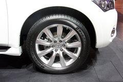 來到車身側(cè)面我們更加會(huì)覺得QX56的龐大,整體造型圓潤(rùn),沒有多余的線條作為修飾,但是反而會(huì)讓人感到車身很厚實(shí)。無鑰匙進(jìn)入也毫無懸念的裝配在了QX56身上,兩側(cè)翼子板上的散熱孔并非形同虛設(shè),而是告訴我們它裝載了一臺(tái)V8 5.6升汽油發(fā)動(dòng)機(jī)。其次英菲尼迪慣用的大尺寸輪轂同樣被裝到了這款新車上,22寸9幅造型的鋁合金輪轂使我不得不說很有氣勢(shì),與之搭配的是普利司通275\50 R22輪胎,抓地力應(yīng)該相當(dāng)不錯(cuò)。