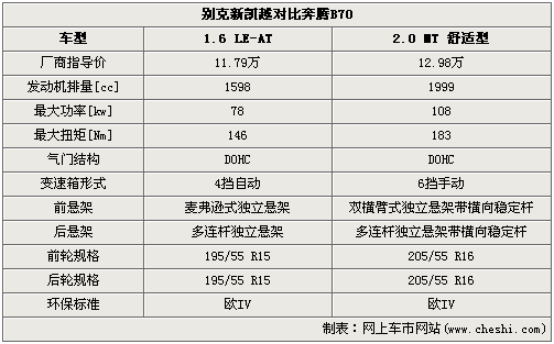 別克取消了新凱越的1.8L版車型,1.6L發(fā)動(dòng)機(jī)足以對(duì)應(yīng)您日常的車輛使用需求;搭載2.0升發(fā)動(dòng)機(jī)的奔騰B70在動(dòng)力方面表現(xiàn)比較出色,配合追求駕駛樂(lè)趣的6檔位手動(dòng)變速箱,操控的運(yùn)動(dòng)感覺(jué)非常好。新凱越后懸架采用多連桿獨(dú)立式,給予車輛較為溫柔的支撐力,擁有很好舒適度;奔騰B70采用帶有橫向穩(wěn)定桿多連桿獨(dú)立后懸架,對(duì)車身提供了更加堅(jiān)強(qiáng)的支撐,過(guò)彎側(cè)傾比抑制效果好。