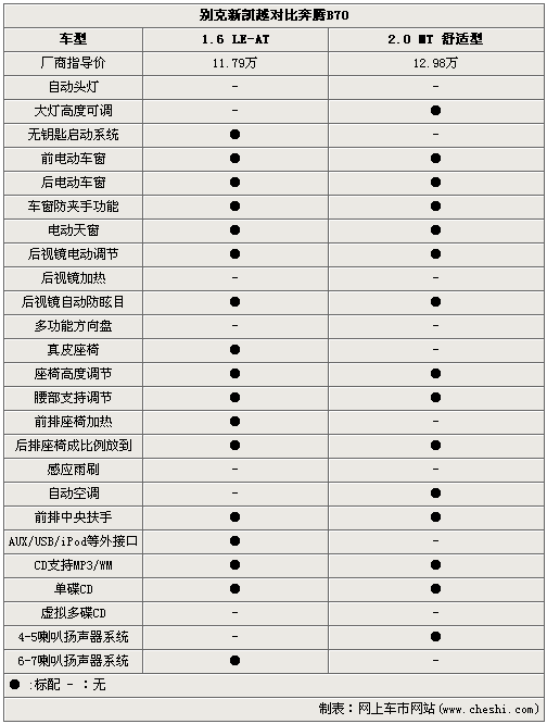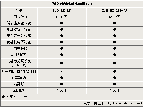 如果說(shuō)今天對(duì)比的兩款車中,新凱越就是這個(gè)問(wèn)題的答案。無(wú)鑰匙啟動(dòng)系統(tǒng)、真皮包裹座椅、前排座椅加熱等高級(jí)配置同級(jí)別車型無(wú)人能及,比起高一級(jí)別的B70同樣體現(xiàn)出明顯的優(yōu)勢(shì)。AUX/USB/iPod外接音源和超過(guò)6個(gè)以上的車載音響系統(tǒng),吸引來(lái)喜愛音樂(lè)的朋友們不成問(wèn)題。身為車系中的最低配版本,2.0 MT 舒適型的奔騰B70還是有比較亮眼的配置,可調(diào)大燈高度、自動(dòng)空調(diào)等成為區(qū)別于新凱越的優(yōu)勢(shì)體現(xiàn)。