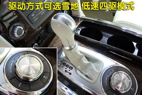 也許看到這里你仍然覺得這確實非常像一款豪華轎車,但是這個金屬材質(zhì)的旋鈕還是清晰的告訴你它真的是一款SUV車型。似乎在你沒有仔細(xì)閱讀使用前,你會覺得這個旋鈕似曾相識,但是它的作用卻是驅(qū)動轉(zhuǎn)換的操作系統(tǒng)?梢运矔r切換高速四驅(qū)、低速四驅(qū)及雪地三種模式,如果你覺得這樣很繁瑣,也可以將其調(diào)節(jié)到AUTO自動模式下,它也會根據(jù)實時路況做出聰明的反應(yīng)。