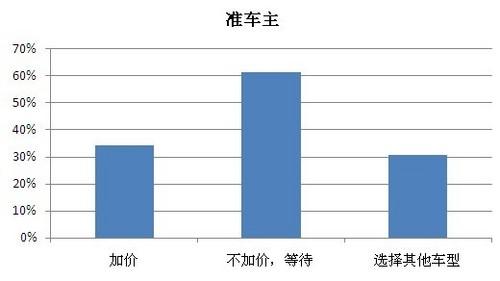 車主二次購車時對加價購車的反感要高于準車主3倍。10%的車主表示接受加價,34%的準車主愿意加價。相比之下,準車主加價購車的可能性是車主的三倍。