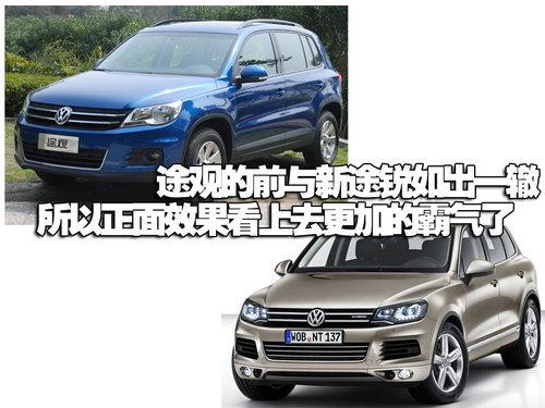 大名鼎鼎的途銳SUV可 是大眾集團(tuán)的第一款豪華SUV,有人可以不知道大眾車隊(duì)和途銳征戰(zhàn)最嚴(yán)酷的達(dá)卡拉力賽,但是很少有人不知道途銳是一款售價(jià)在70-100余萬的豪華 SUV。正如上圖所示,您是否也認(rèn)為國產(chǎn)的途觀和豪華SUV途銳特別的像呢?也許,當(dāng)您把國產(chǎn)途觀買到家之后一定會有人這樣說:看看,那家伙買了一臺“小 途銳”。