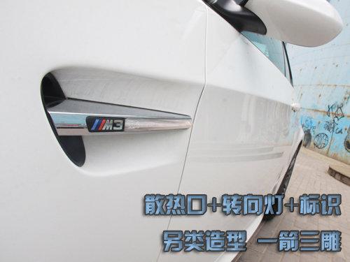 前翼子板突出的很內(nèi)斂,十點(diǎn)鐘方位擁有一個(gè)很特別的設(shè)計(jì),同時(shí)集合了三個(gè)功能,發(fā)動(dòng)機(jī)側(cè)向散熱出風(fēng)口、轉(zhuǎn)向LED指示燈以及證明M3身份的標(biāo)識。頂部的線條從這里一直延伸,經(jīng)過門把手,匯入尾燈里面。