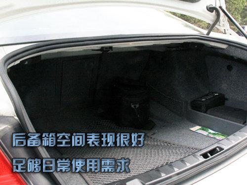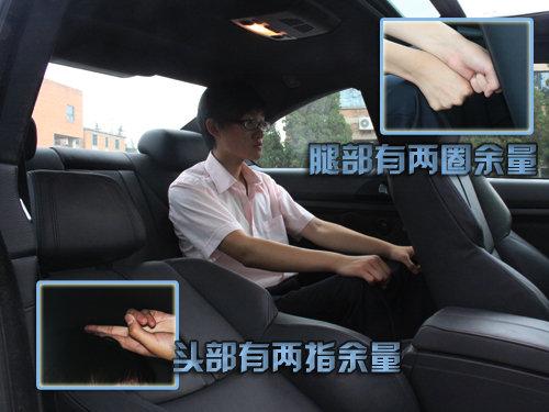 測試者座椅調(diào)整合適以后,正常坐姿時頭部有一個拳位余量,腿部活動自由,沒有特別拘束的感覺;后排空間表現(xiàn)良可,測試者正常坐姿下,腿部空間表現(xiàn)很好,有兩個拳位余量,頭部表現(xiàn)一般,有兩指空間,測試者稍有壓迫感。(測試者身高178CM)
