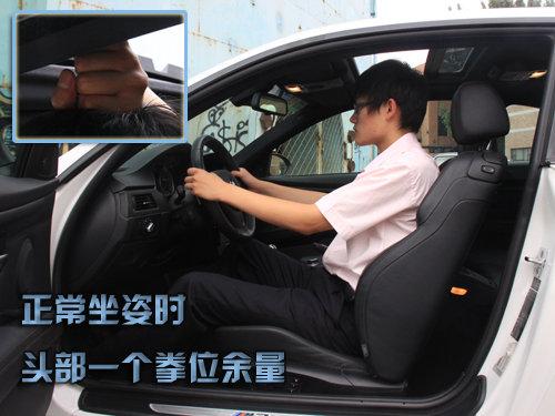 M3基于3系轎跑版打造,車身尺寸方面在原有的基礎(chǔ)上做出了更加符合跑車個性的處理。車三圍是4615mm*1804mm*1424mm,軸距為2761mm,整個尺寸都要比普通版進(jìn)口3系大一號,起初因為兩門設(shè)計產(chǎn)生的對空間的擔(dān)心有所動搖,測試者178CM。