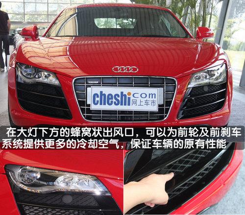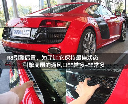奧迪R8的駕駛艙相對(duì)靠前,而在駕駛艙之后則是巨大的引擎室——這是典型中置發(fā)動(dòng)機(jī)賽車的特征,這種設(shè)計(jì)也大大優(yōu)化了車身前后比例,使R8的前后重量分達(dá)到了44:56。透過R8后方透明的發(fā)動(dòng)機(jī)罩,V10 5.2升FSI發(fā)動(dòng)機(jī)安靜的伏臥其中。在設(shè)計(jì)師所營造的視覺效果下,人們很容易把它與賽車聯(lián)系在一起。即便在一個(gè)不了解賽車的人面前,也一定能從中看出它的與眾不同和獨(dú)一無二。