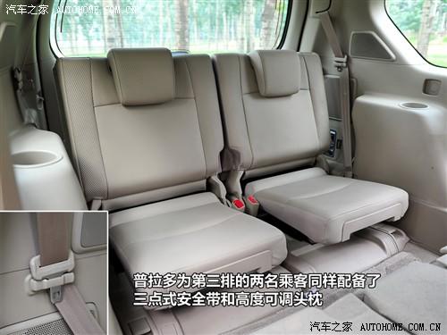 在打開第三排座椅的情況下,普拉多后備廂的儲物空間已經(jīng)近乎于零了,所以滿載7人之后,應(yīng)該趕快把第三排座椅收回去,不會?請看上圖。收起第三排座椅同樣是兩步,先摳起座椅旁邊的機關(guān),椅墊就可以自動收回了,然后再摳起椅背上的開關(guān),放倒椅背就可以恢復(fù)如初了。