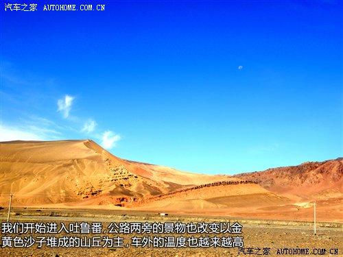 公路兩旁開始出現(xiàn)了以金黃色沙子堆成的山丘,車外的溫度也越來(lái)越高,窗外吹來(lái)陣陣的暖風(fēng),這也意味著我們開始進(jìn)入吐魯番了。在進(jìn)入吐魯番之前我們已經(jīng)經(jīng)過(guò)連了2個(gè)小時(shí)的趕路,為了安全起見,我們選擇了吐魯番游務(wù)服務(wù)中心休息,而車主和維修人員則開始忙忙碌碌地檢測(cè)車輛。