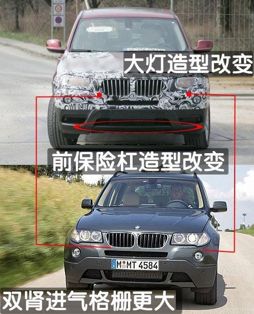 與目前的車型相比,這款 X3車型的尺寸幾乎沒有發(fā)生什么變化,其車型風(fēng)格體現(xiàn)了CS概念車上的一些元素。整體車身外觀沒有發(fā)生什么變化,但這款新車型預(yù)期將采用更為突出的散熱格柵及新的前車燈設(shè)計(jì)。除了車身外觀上的一系列改進(jìn)外,新車型還將采用一系列新配置,以此來迎戰(zhàn)來自奧迪與奔馳的競(jìng)爭(zhēng)。新車型配置了寶馬X6車型上的夜間平視顯示器,其雙氙氣前車燈還具有環(huán)景照明功能。