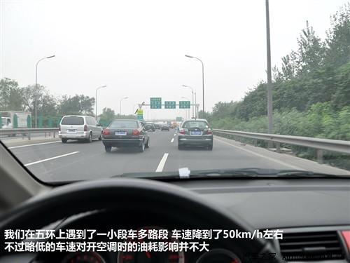 由于五環(huán)路上遇到了小段的車多路段,所以第二圈的平均車速略低一些。但好在由于不需要考慮“兜風(fēng)”,所以這個車速對開空調(diào)油耗測試的影響并不大。