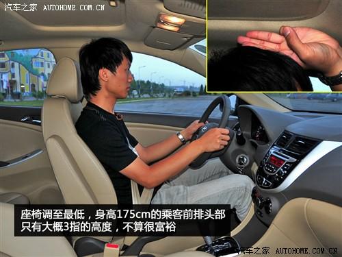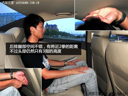 圖中的體驗(yàn)著身高175cm左右,在調(diào)整好合適的坐姿之后,前排頭部只有三指,而后排也僅僅3指,所以這點(diǎn)證明了流線型的車身線條還是會(huì)給頭部一些小的影響。當(dāng)然,超長(zhǎng)的軸距直接帶來了腿部空間的提升,作為小型車來說后排能達(dá)到兩拳的長(zhǎng)度確實(shí)不多見。