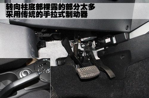 三菱ASX勁炫的轉(zhuǎn)向柱底部裸露的部分太多,沒(méi)有周密的防護(hù)板保護(hù)措施,剎車(chē)和油門(mén)踏板采用橡膠材質(zhì)包裹,起到防滑的作用。這款新車(chē)采用傳統(tǒng)的手拉式制動(dòng)器,更高端的電子式手剎并沒(méi)有出現(xiàn)在這款車(chē)上。