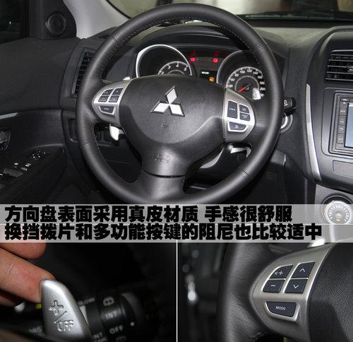 三菱ASX勁炫的方向盤(pán)表面采用真皮材質(zhì)包裹,手感非常舒服,而且這款車(chē)的方向盤(pán)配備了多功能按鍵和換擋撥片,阻尼適中,操作也很是便利。另外,三菱ASX勁炫方向盤(pán)兩側(cè)的控制桿模具做工都比較不錯(cuò),質(zhì)量水平非常到位。