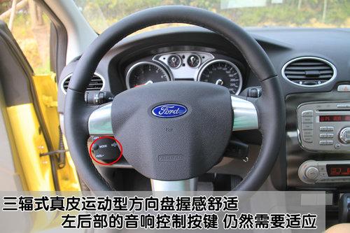 三幅式運動型真皮方向盤握感舒適,大小適中。齒輪齒條式/EHPAS 電子液壓動力輔助轉(zhuǎn)向系統(tǒng)讓2011款福克斯兩廂運動型擁有較重的手感,這也是運動型轎車的特性,但是女性朋友可能就不會喜歡了。
