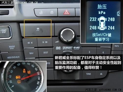 君威全系都備有胎壓監(jiān)測系統(tǒng),直接式胎壓監(jiān)測將傳感器植入輪胎內(nèi),實時監(jiān)控每條輪胎的胎壓狀況,駕駛員可以從行車電腦中直接調(diào)出壓力數(shù)值,做到心中有數(shù),雖然有時會有數(shù)值不準的狀況發(fā)生。另外2010款君威全系都配備了安吉星系統(tǒng),購車者可免費使用一年,體驗定位、呼叫和緊急救援等服務。