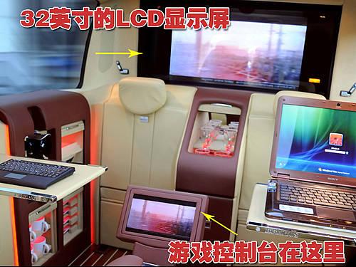 32英寸的LCD顯示屏放置在前排座椅后的隔斷墻上,其可以作為索尼Vaio筆記本電腦系統(tǒng)的顯示器,并且該車(chē)的車(chē)廂內(nèi)部還有無(wú)線網(wǎng)絡(luò)又來(lái)連接另外的筆記本電腦。所安裝的索尼Playstation 3游戲控制臺(tái)可以播放電影以及賽車(chē)模擬游戲。此外其較大的顯示屏還可以同時(shí)全方位的展示車(chē)輛周?chē)臓顩r。