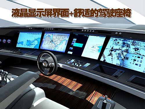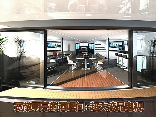從官方設(shè)計圖上我們可以看到起奢華的內(nèi)部裝飾,液晶顯示屏的操控界面,寬大舒適的駕駛艙座椅,在其船艙還配置了寬敞的酒吧間,木質(zhì)的地板以及灰色的裝飾增添了雅致的風(fēng)格。此外還有舒適的長沙發(fā)以及小型會議桌等等。