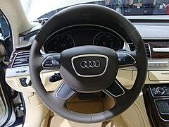 全新奧迪A8L車廂內部的另一項新穎配置為前副駕駛席座椅的背面還設置了一個較小的座椅。這個小座椅的座椅面角度可調節(jié)。此外在前排座椅的背面還設置了供后排乘客休息的腳托。