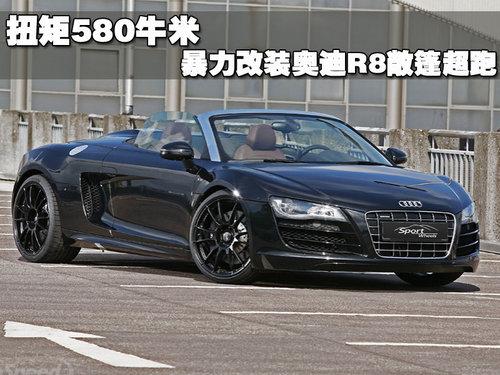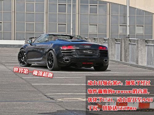 奧迪R8 spyder在今年的北京國(guó)際車展上正式亮相,火辣的外形讓其瞬間成為車展上最受歡迎的車型之一。奧迪官方版R8 Spyder搭載一款5.2升V10發(fā)動(dòng)機(jī),最大輸出功率為392千瓦,峰值扭矩530Nm,最高車速313公里/小時(shí)。這一串?dāng)?shù)據(jù)對(duì)車迷們來說已經(jīng)相當(dāng)勁爆了,不過德國(guó)知名改裝廠商Sport-Wheel似乎對(duì)此并不滿足。他們近日推出了一款特別改裝版R8 Spyder,將動(dòng)力提升到了令人驚嘆的448千瓦!