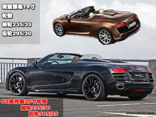 由Sport-Wheel出品的這款改裝版奧迪R8 Spyder在全車外形上并沒有做太大改動(dòng),主要著眼于動(dòng)力的提升。不過為了配合超強(qiáng)的動(dòng)力,他們選裝了傳奇品牌OZ制造的Ultraleggera HTL系列輪胎。這是一套20寸的運(yùn)動(dòng)輪轂,采用前輪235/30-20后輪305/25-20的配比,在安全性上較官方版更勝一籌,價(jià)值40000元。